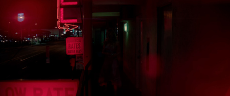 Переход к красному освещению происходит резко и окончательно, когда возвращается муж Айрин, нарушая хрупкое равновесие и предвещая грядущий конфликт. Финальные сцены насилия буквально утопают в красном свете — особенно эпизоды в стрип-клубе, в пиццерии и последняя встреча с Берни, где красный достигает максимальной выразительности.