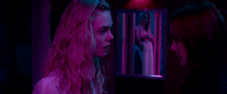 В «Неоновом демоне», снятом в сотрудничестве с оператором Наташей Брайер, Рефн разоблачает мир моды Лос-Анджелеса через взлет и падение начинающей модели Джесси, смещая фокус с мужского насилия на женскую одержимость. Цвет здесь становится главным маркером искусственности и хищнического потребления. В палитре фильма практически нет теплых, естественных оттенков — оранжевых и желтых. Вместо них использовались синтетические, холодные цвета: красный, бирюзовый, фуксия, фиолетовый. Такая палитра визуально задает мир, целиком построенный на искусственности, в котором единственная ценность — это красота.