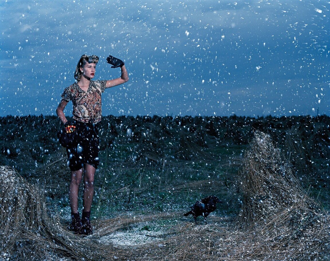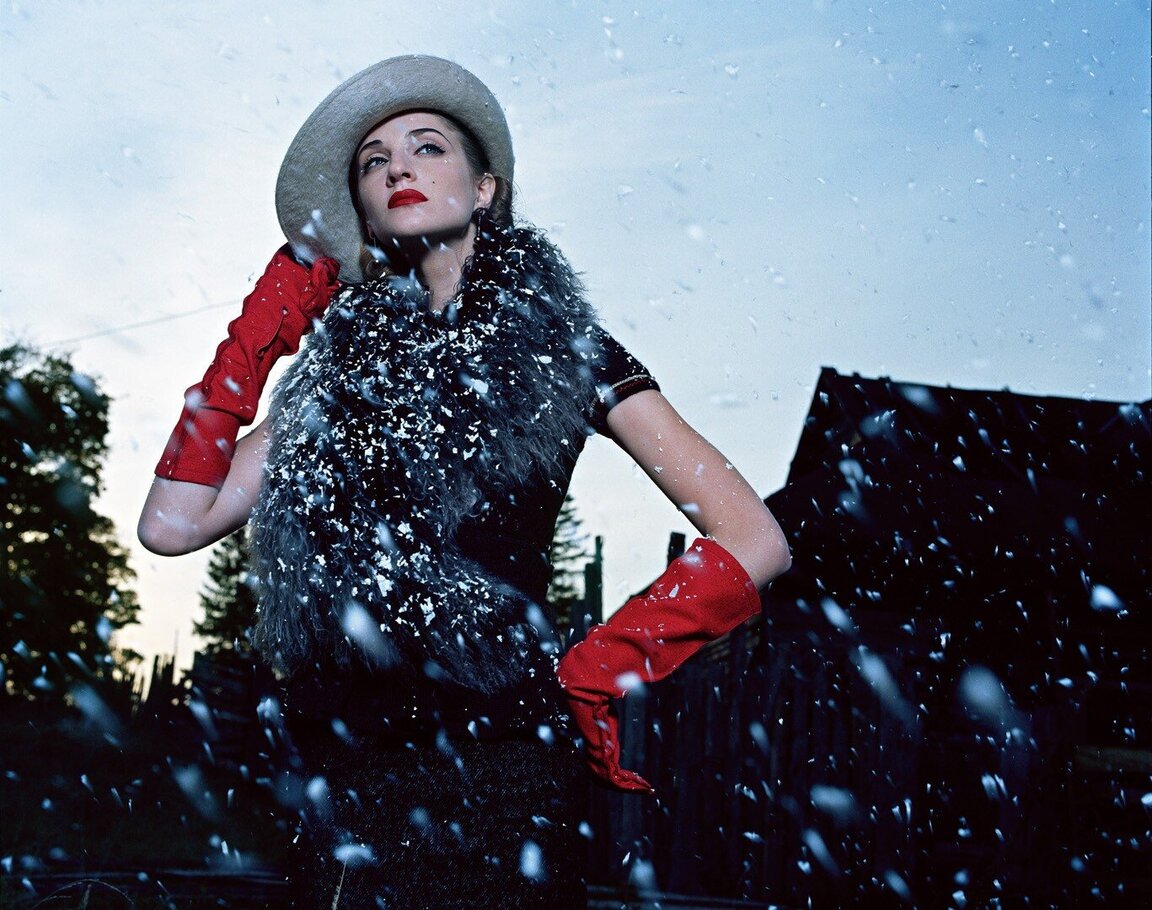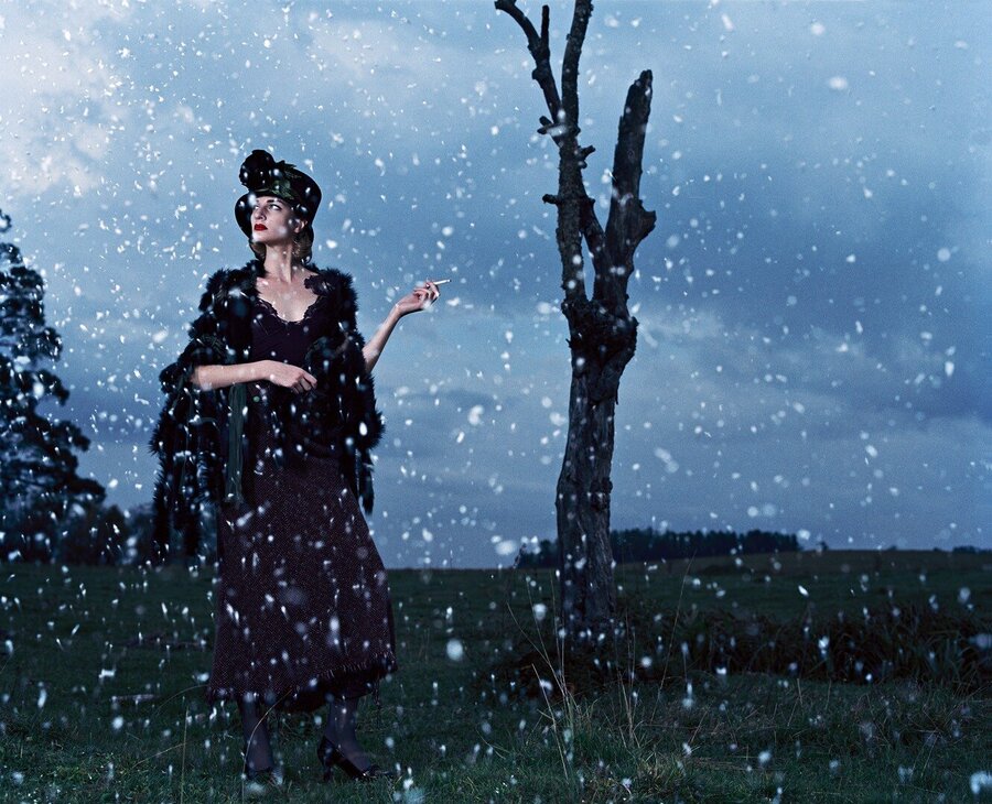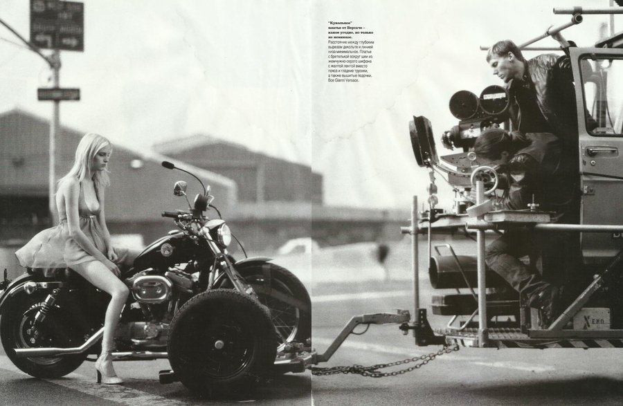 Алена: Девяностые — это минималистичные времена. Вещи были очень простые: черное пальто, черные брюки, черные ботинки — времена Prada. Очень аскетичное время. Поэтому разглядывать было особенно нечего. Снимали человека в среде, силуэт на фоне, атмосферу. Нужно было создать желание попасть в эту среду, в это настроение. Потом с 2000-х вещи усложнились, появились детали, блестки, и в съемках нужно было приближаться, чтобы рассмотреть их.