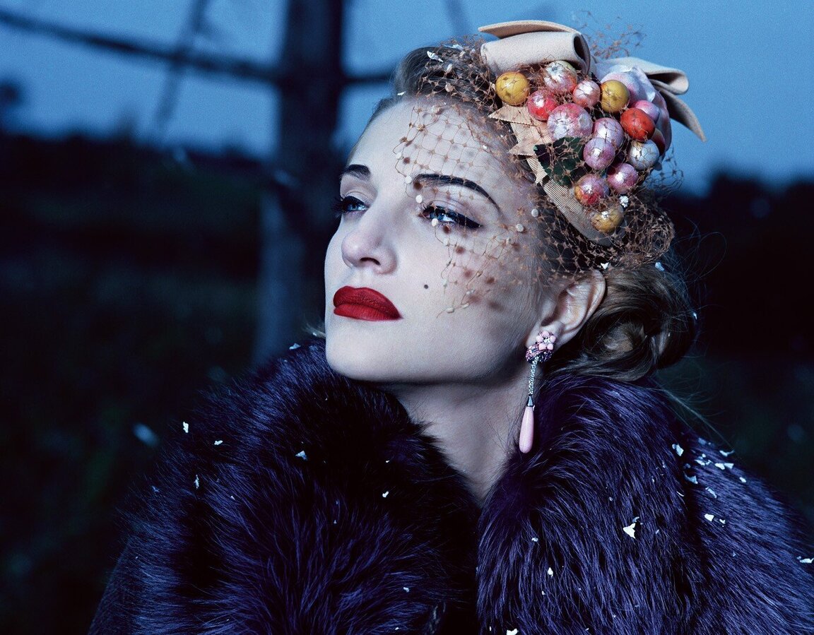 Алена: На тему влияли тренды — мы же ездили на показы. Работа на показе — это самое главное, потому что во время просмотра разных шоу сразу понимаешь, что цепляет у каждого дизайнера, складывается история. Дизайнер дает толчок. Например, Джон Гальяно сделал коллекцию про 1940-е в чистом виде, но когда я добавила туда разные контексты, получилась индивидуальная история.