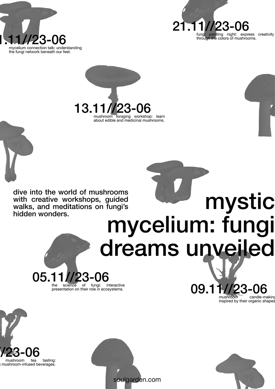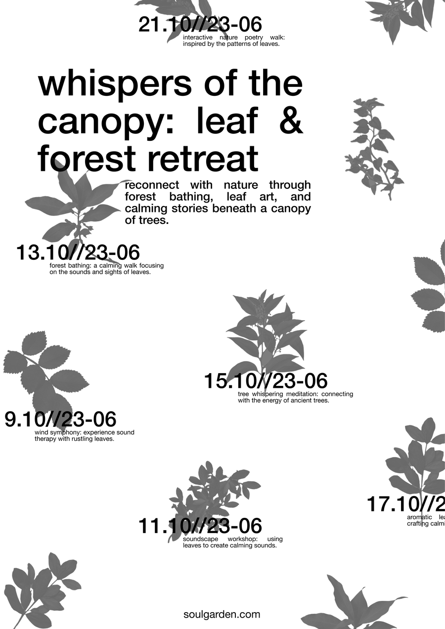серия афиш мероприятий на осень (каждый месяц посвящен отдельной группе растений, мероприятия, соответственно, тоже с ними связаны)