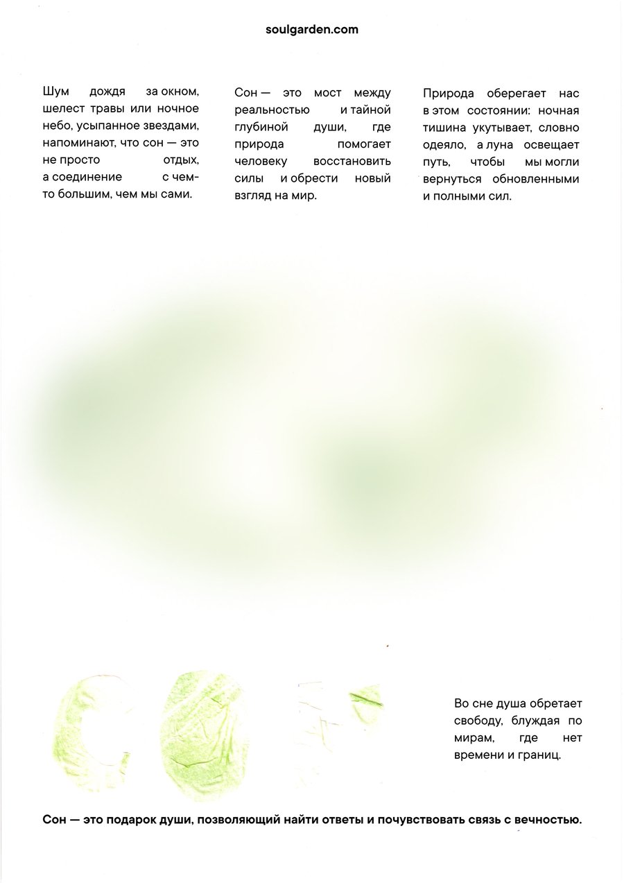 Миссия компании — помочь душам воссоединиться с собой и обрести спокойствие, освобождаясь от накопленного стресса и напряжения через короткие, но глубокие ночные ритуалы.
