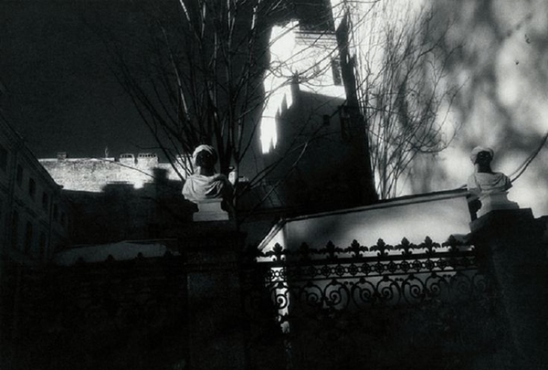 Серия со львами и классическими бюстами показывает Ленинград как каменный музей, где скульптуры стали главными героями. Люди, если и появляются, то крошечными фигурами между массивными формами. Имперские символы продолжают «стоять», но сняты так, будто это декорации к мрачной пьесе: тяжёлый контраст, плотные тени, отсутствие жизни вокруг.