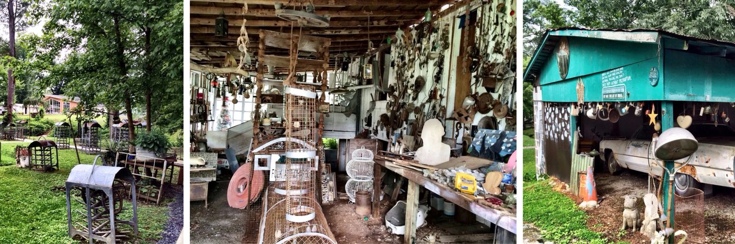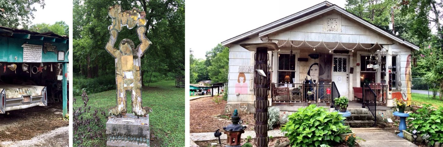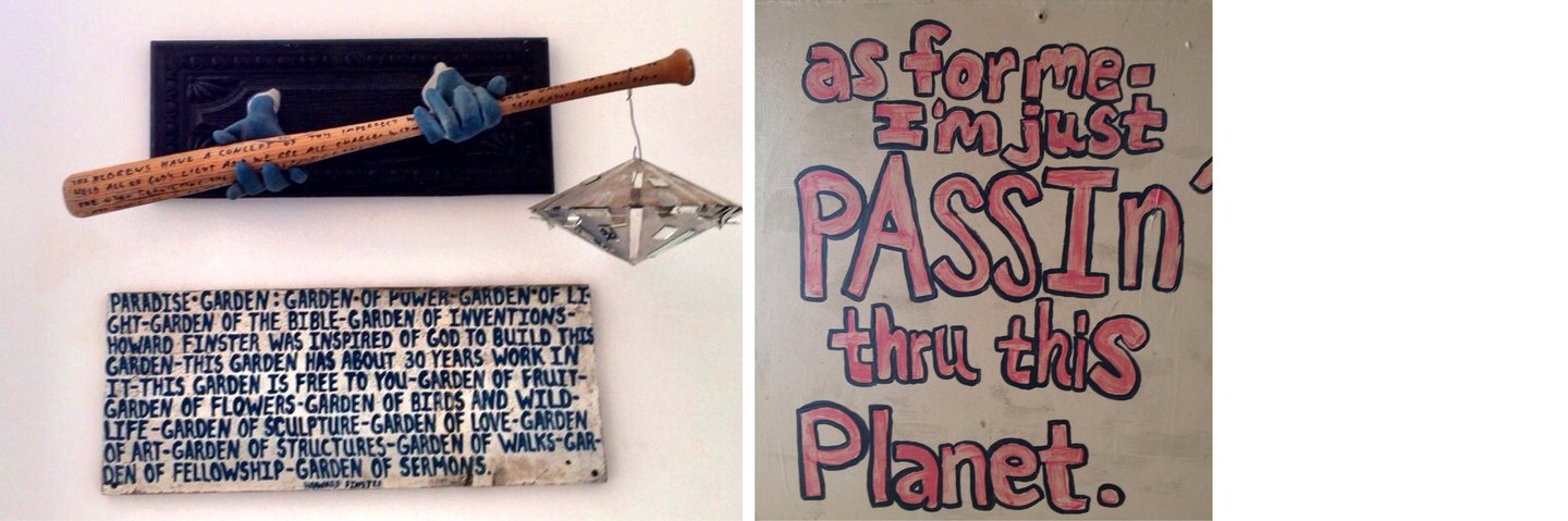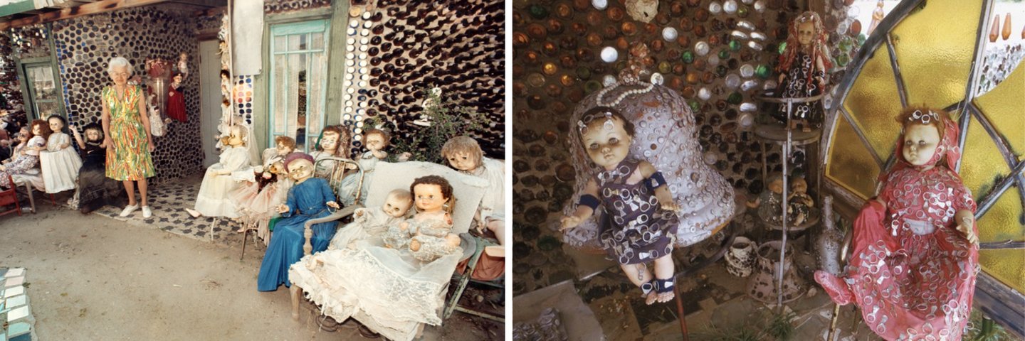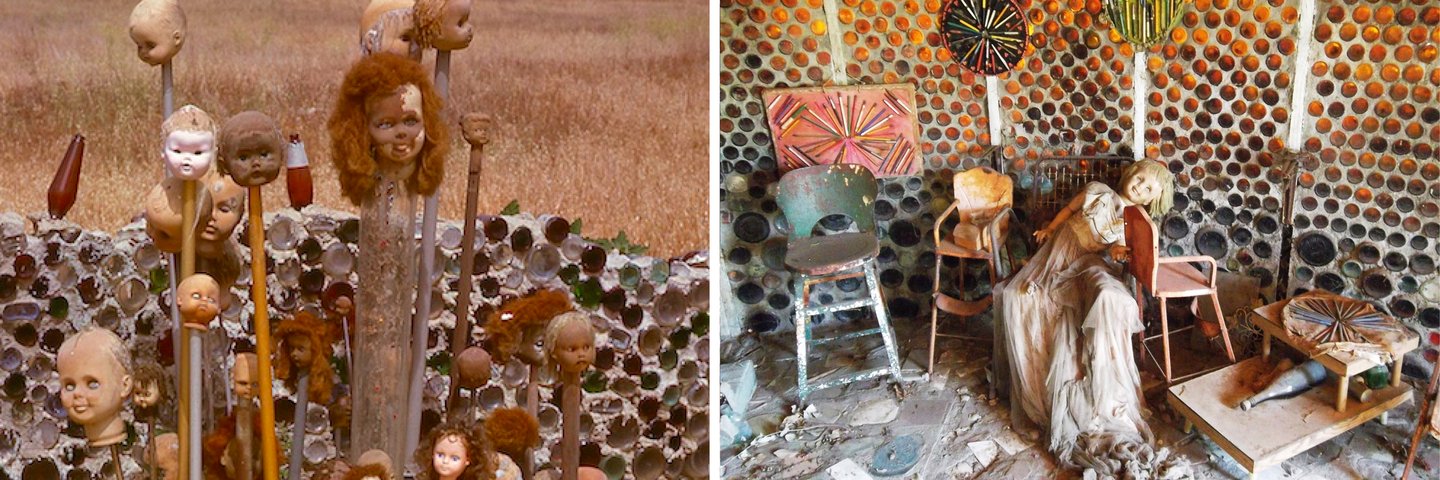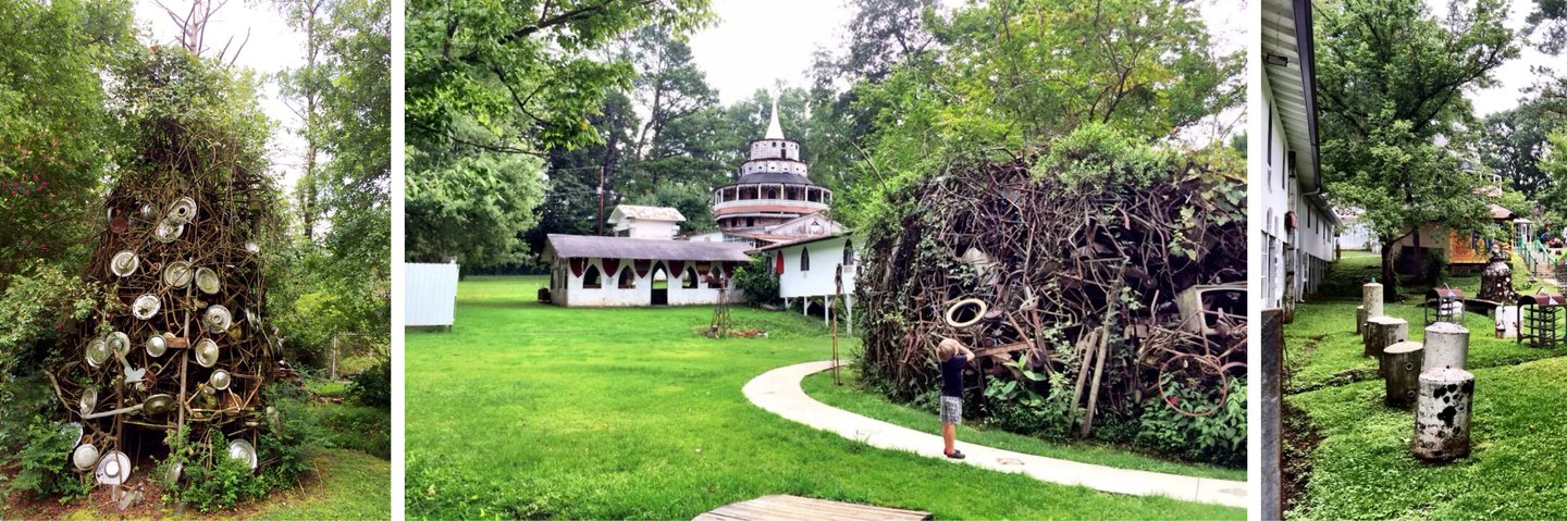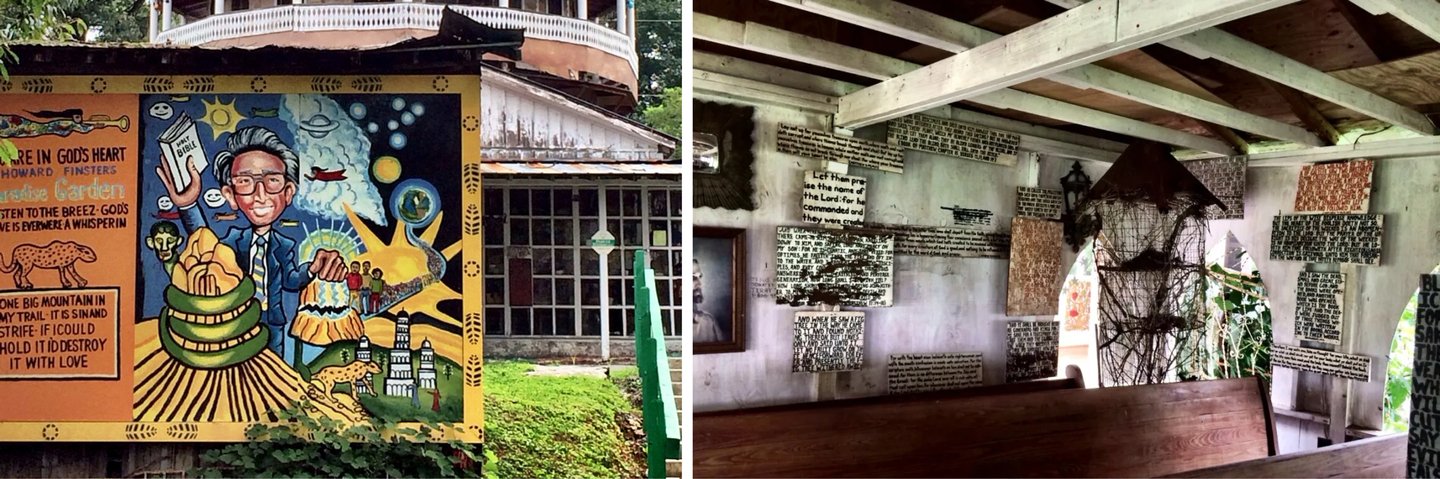 На фотографиях изображены две ключевые части Paradise Garden — масштабного арт-ансамбля аутсайдера Говарда Финстера, расположенного в Сумервилле, штат Джорджия (Summerville, Georgia).