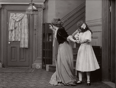 Видеофрагменты из фильмов «Неизвестность» и «Одинокая долина» («Suspense», Лоис Вебер и Филлипс Смолли, 1913 г. и «The Lonely Villa», Дэвид Гриффит, 1909 г.)