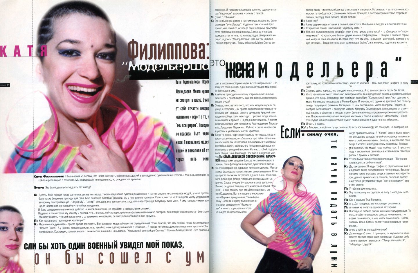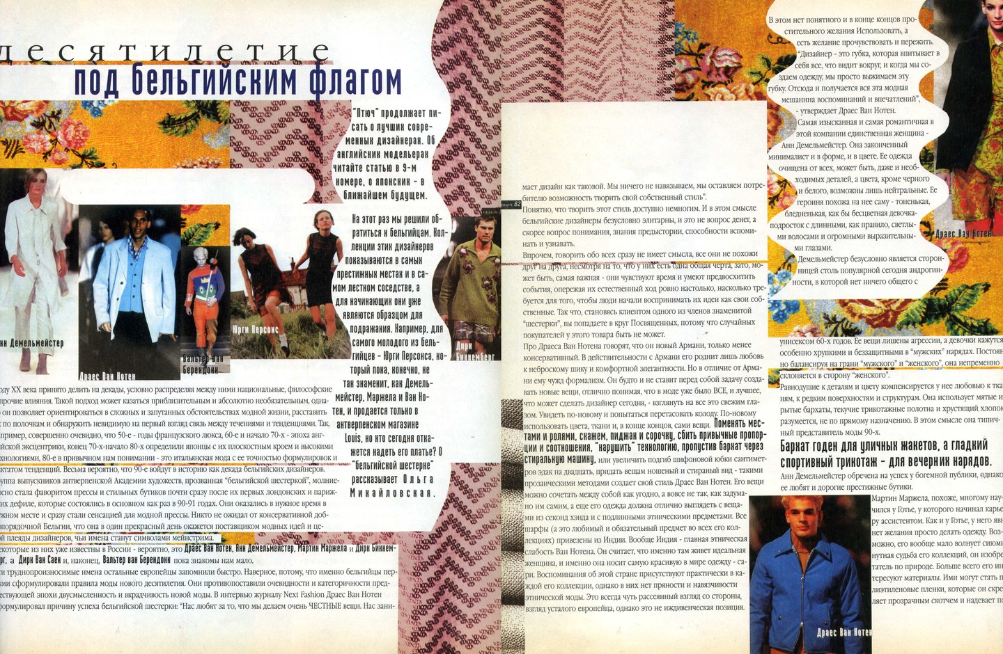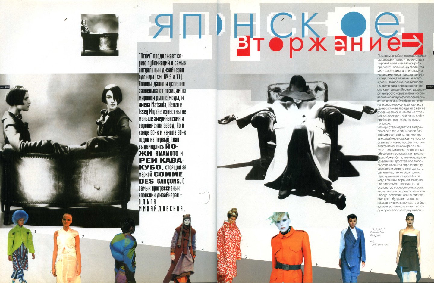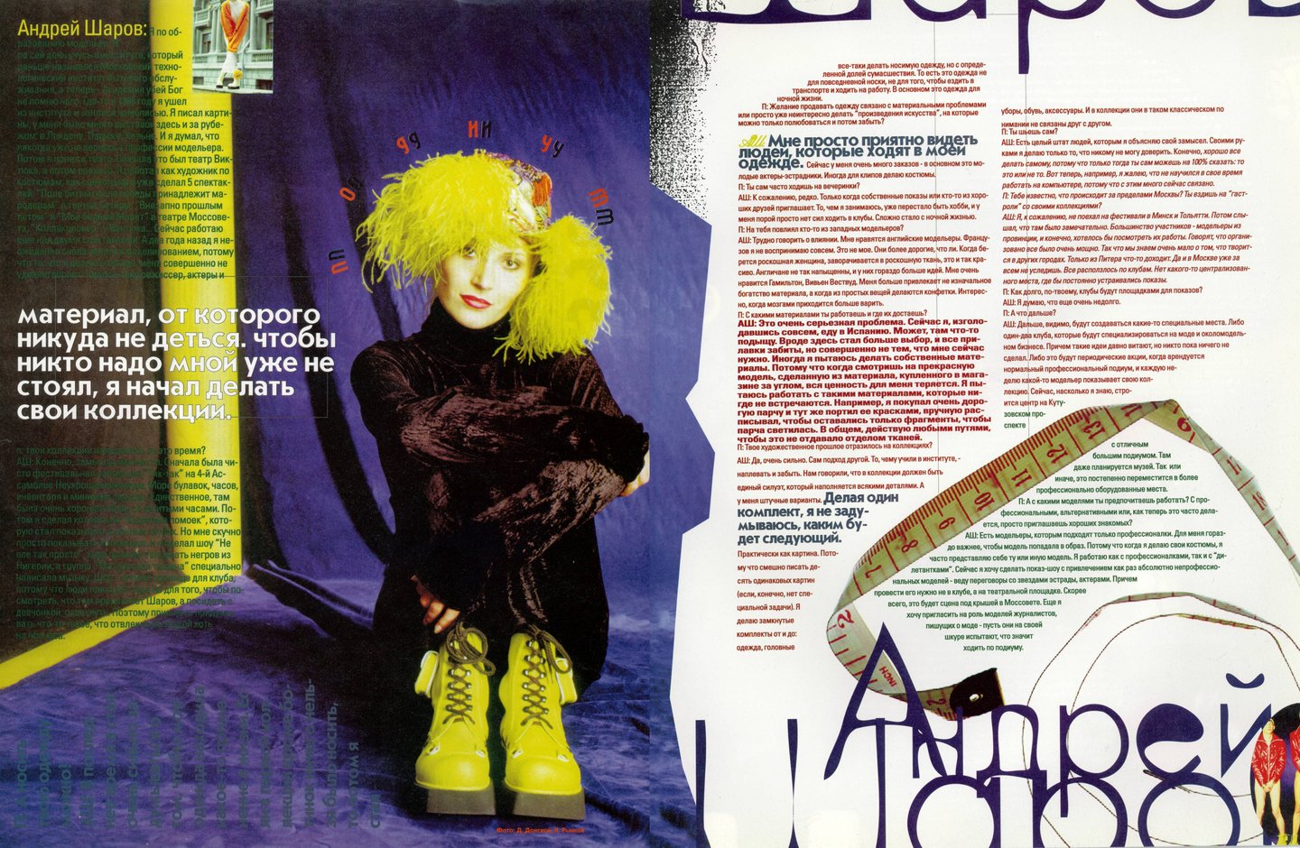 Почти в каждом номере «Птюча», начиная с самого первого, можно найти интервью с дизайнером моды, дополненное съемкой последней коллекции.