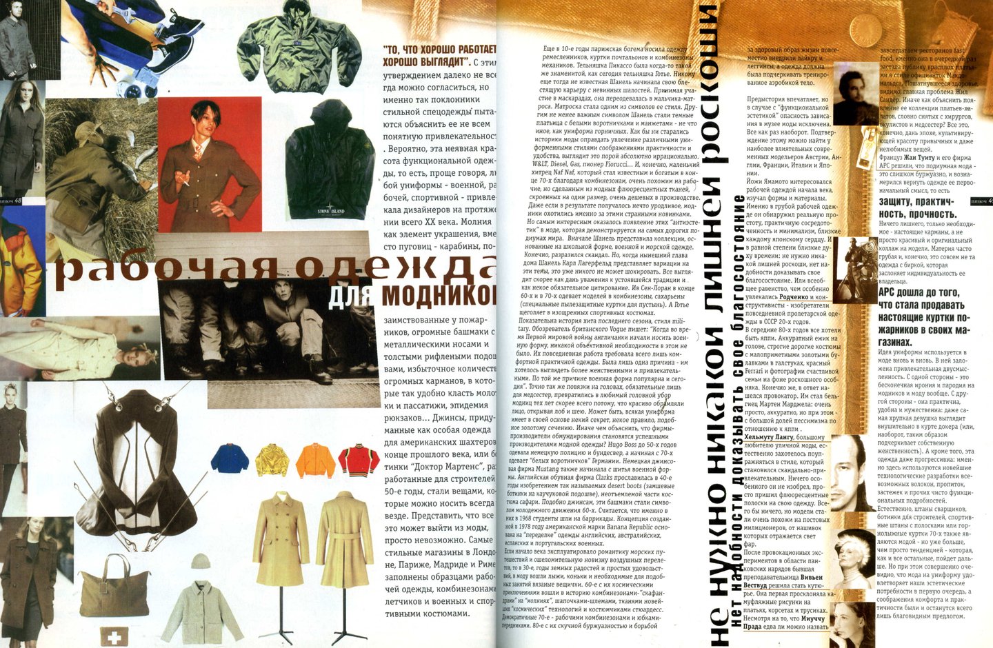 Статьи о феноменах street-fashion (02-1995) и секонд-хэнд (08-1998), о вдохновении новыми технологиями (05-1995) и рабочей одежде (02-1997)
