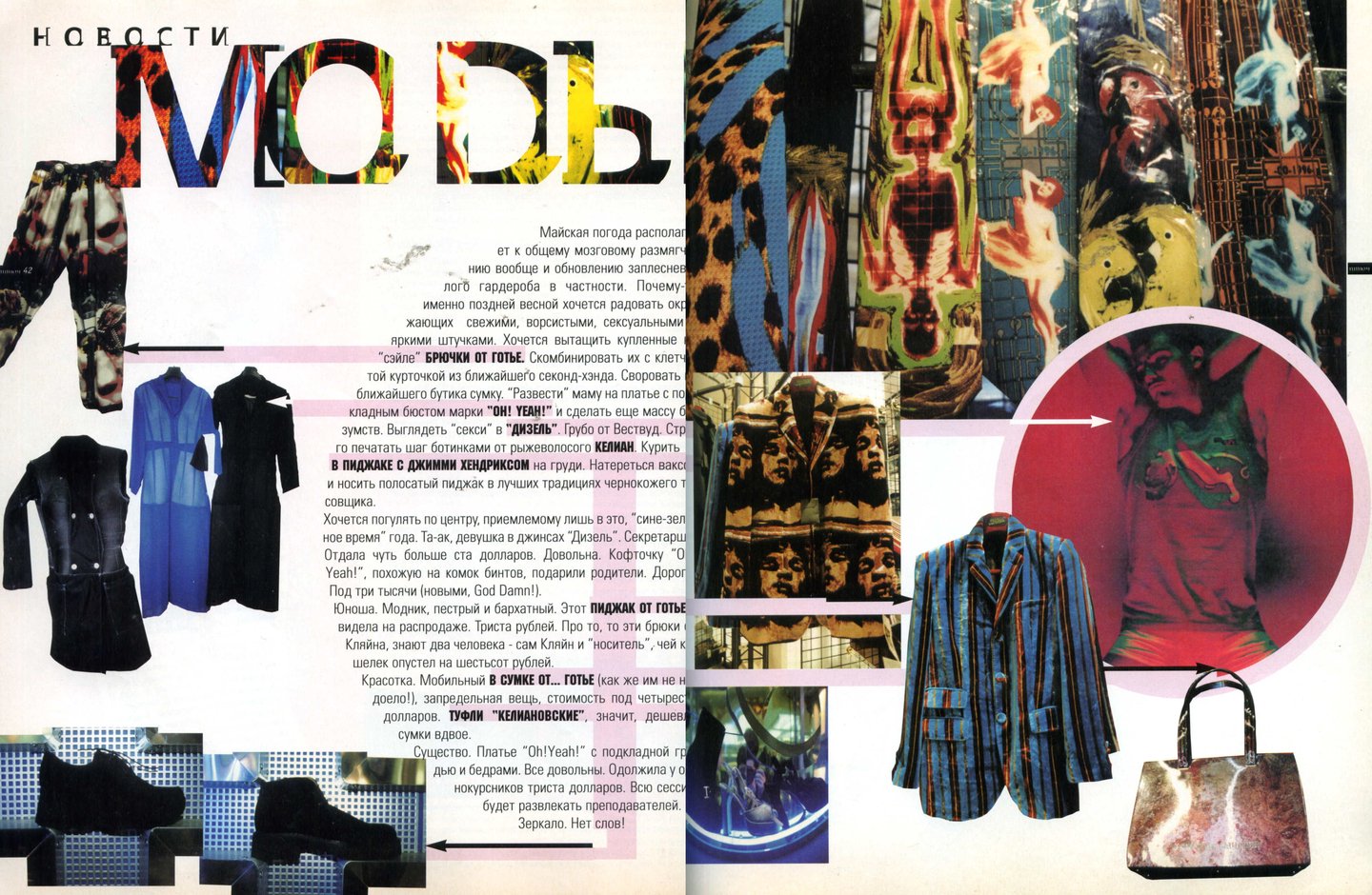 В середине девяностых на локальной культурной сцене стали звучать имена дизайнеров одежды — модельеров, как их тогда называли: Ольга Солдатова, Маша Цигаль, Николай и Алик Полушкины, Владимир Мандриков, Константин Гончаров и другие. До эпохи распространения интернета и социальных сетей главным источником новых имен и культурных событий для широкой публики были журналы.