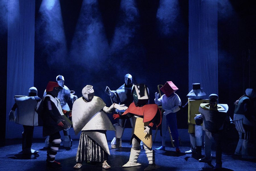 Реконструкция первой русской футуристической оперы «Победа над солнцем» в Московском театре музыки и драмы Стаса Намина по эскизам, предоставленным Русским музеем. 2013 г.