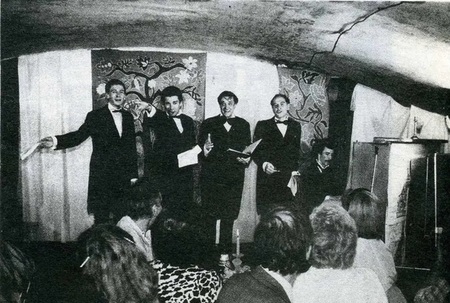 По мнению искусствоведа Екатерины Андреевой история советского неофициального искусства в Ленинграде началась во второй половине 1940‐х с акции писателей «филологической школы» в поддержку Бориса Пастернака. Они написали на граните набережной в районе Летнего сада «Да здравствует Пастернак!». «Так в пространство Ленинграда вернулся импульс авангардного абсурдистского спектакля, в частности театра Игоря Терентьева конца 1920‐х годов. Абсурд этого лозунга — советские люди привыкли читать „Да здравствует КПСС!“ — отличительная черта ленинградского послевоенного авангарда.»[Андреева, 2023, стр. 186]