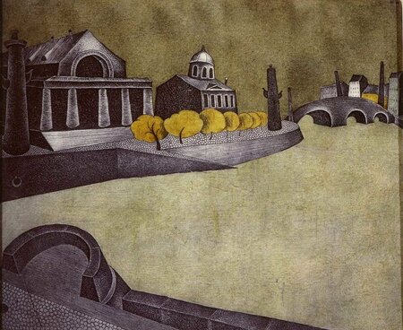 Шварц Шолом «Пейзаж. Дома», 1950-е гг., Государственный музей «Царскосельская коллекция», Пушкин https://bigenc.ru/c/orden-nishchenstvuiushchikh-zhivopistsev-39e7e1
