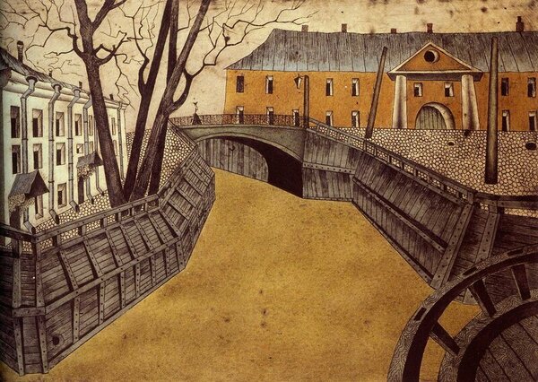 Шемякин Михаил «Биржа», 1965 г.; «Введенский канал», 1966 г. https://ziggyibruni.livejournal.com/29309.html?ysclid=mi757foy6v2918634
