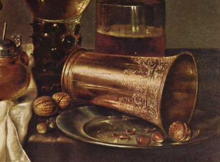 У Хеды распад не буквальный — еда не сгнила, но её форма теряет торжественность. В контексте барокко это первая ступень к идее тихого распада, где переход (а не смерть) становится смыслом изображения. Это состояние можно описать как «момент перед гниением» — вещи уже несвежи, но ещё держатся за форму. Именно здесь проявляется кантовская идея перехода от отвращения к созерцанию — тление как движение мысли, а не как ужас.
