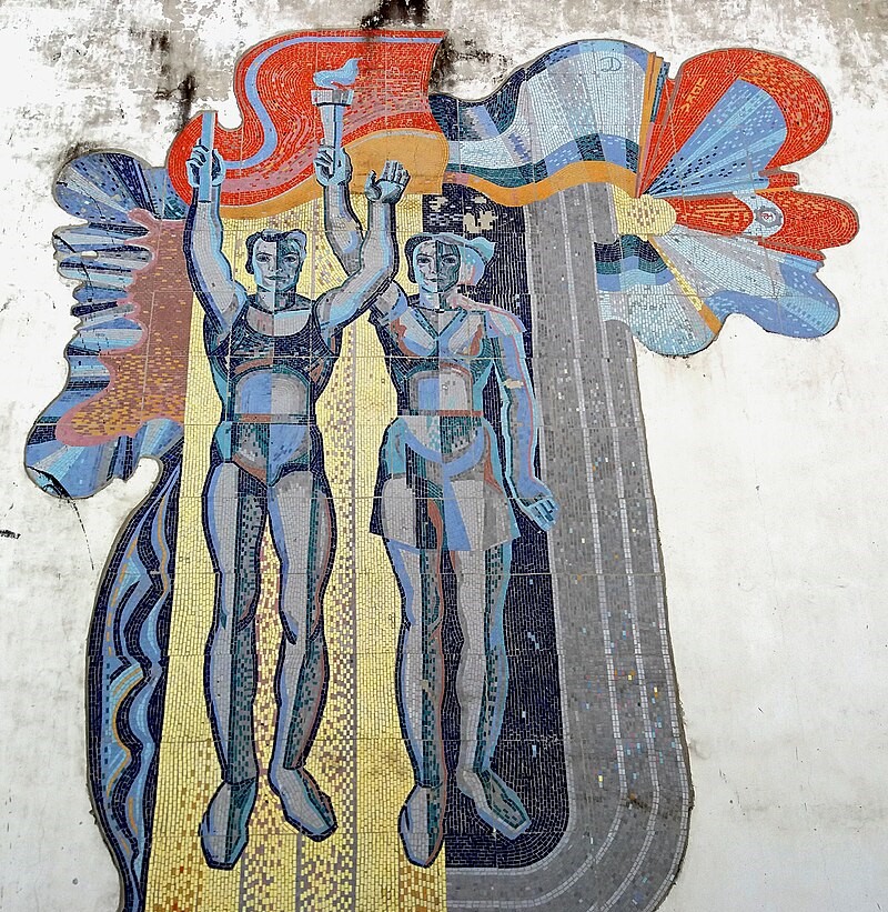 Мозаики стадиона юных пионеров. Эльвира Жерносек и Мартуни Потикян, Москва, 1964