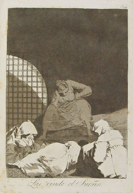 Франсиско Гойя, «Капричос». Слева направо: «Их одолевает сон», «Тут ничего нельзя было поделать» (обе — 1799).