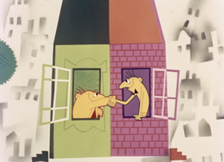 Так, создается новый визуальный язык, но в нем появляется вопрос. А как передать пространство происходящего не используя привычные средства? Ведь до этого использовались проверенные методы живописи, которые в большинстве случаев полностью теряются при упрощении. Поэтому аниматорам приходится методом проб и ошибок выявлять, как построить мир мультфильма, используя минимум средств.