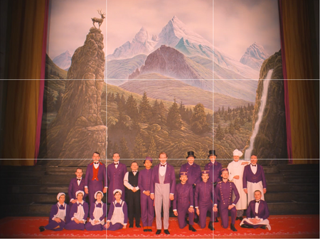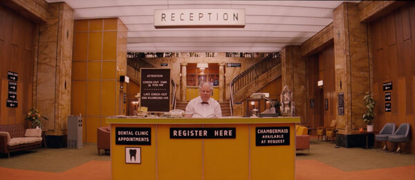 Таким образом сочетание — центрированной композиции, симметрии и сужающейся перспективы — формирует уникальный и узнаваемый визуальный стиль Уэса Андерсона в «Отеле „Гранд Будапешт“».