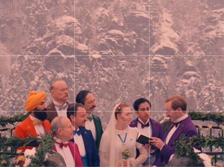 Использование видимой рамки, когда герои находятся внутри «картины», — это прием, который часто используется Уэсом Андерсоном в «Отеле Гранд Будапешт» и в других его фильмах. Так режиссер не только создает визуально привлекательный кадр, но и закладывает определенную смысловую нагрузку.