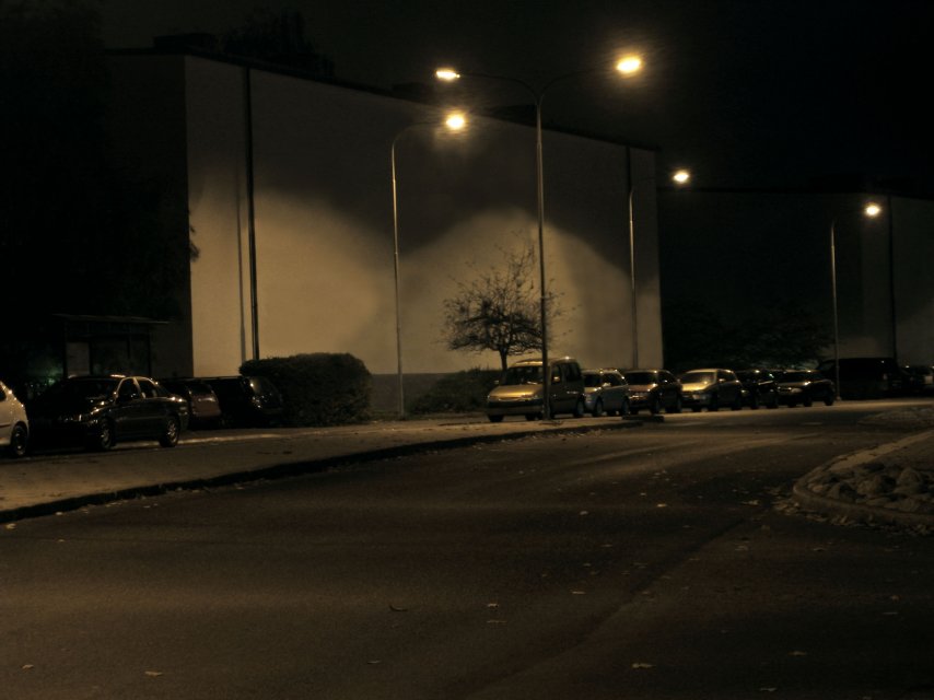 Йонас Дальберг — шведский художник, работающий с архитектурой, кинематографической перспективой и нарушением ориентации. В его работах лиминальность возникает через жесткое нарушение базовых условий видимости и ориентации. Серия «Невидимые города» прежде всего устраняет то, что обычно служит зрителю точкой стабильности (окна, считающиеся «глазами» архитектуры). На ночных снимках малых городов отсутствуют любые пути взгляда внутрь или наружу: дом лишен возможности видеть и быть увиденным. Эта визуальная операция делает пространство герметичным и нечеловеческим. Оно больше не функционирует как городская среда, а превращается в неподвижную оболочку без субъектов. Зритель сталкивается не с местом, а с его «наружной кожей», в которой упразднена социальность.