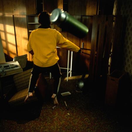 В «Безвесомом пространстве» Дальберг доводит эту логику до предельной точки — он исключает гравитацию как фундаментальную телесную опору. Камера фиксирует обычную комнату, но внутри неё объект плавает в медленной, равномерной, физически невозможной траектории. Это радикально простое визуальное решение разрушает базовый сенсорный контракт: пространство выглядит знакомым, а ведёт себя как инопостроенное. Зритель, привязанный к гравитации собственным телом, не может синхронизироваться с увиденным: комната, по всем параметрам являясь интерьером, функционирует как среда с чужой физикой. Возникает расщепление между зрительным восприятием и телесным ощущением тяжести.