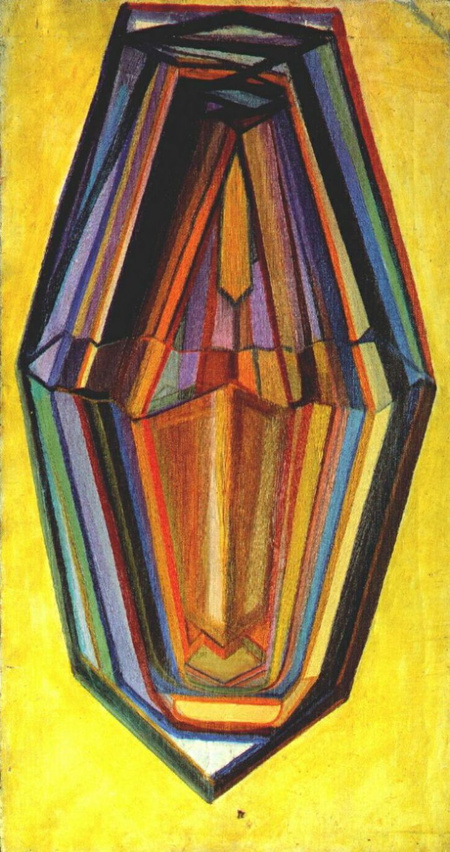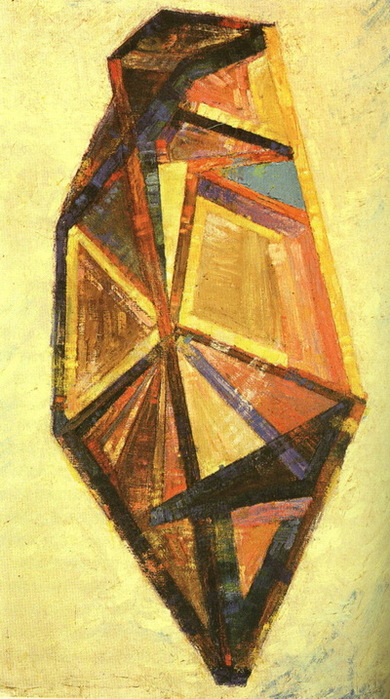Эта работа наглядно демонстрирует, как Матюшин понимал форму не как статичный объект, а как живой, растущий организм. Кристаллическая структура, изображенная на холсте, находится в процессе трансформации и развития. Художник стремился показать внутренние силы формирования материи, ее скрытую энергетику. Здесь особенно заметен его интерес к природным паттернам и универсальным законам роста, общим для минералов и растений.