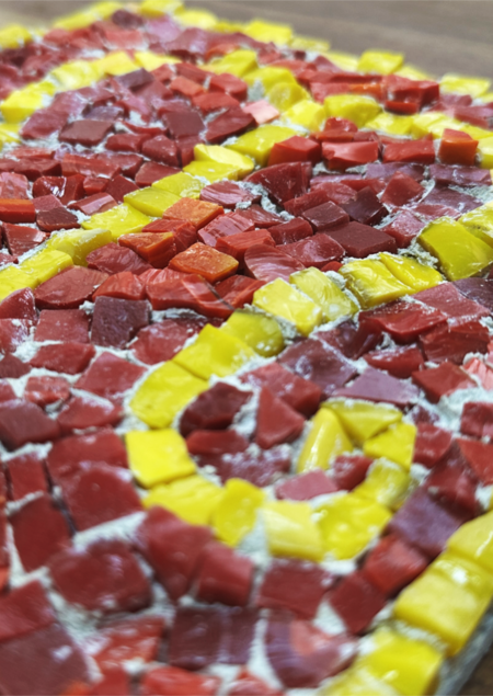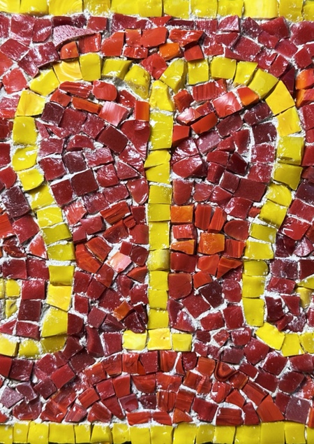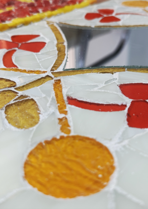 В рамках Творческой мастерской по мозаике и витражу на основе собственных эскизов я изготовила две мозаики: «Тамга Абазовых» и «Рукав невесты». Одна из них сделана из стекла, а другая — из смальты.