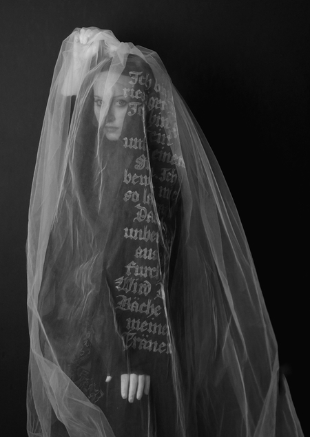 Итоговым продуктом курса по каллиграфии является роспись свадебной фаты готической текстурой, еле заметная, одноименно созвучная с текстурой кружева
