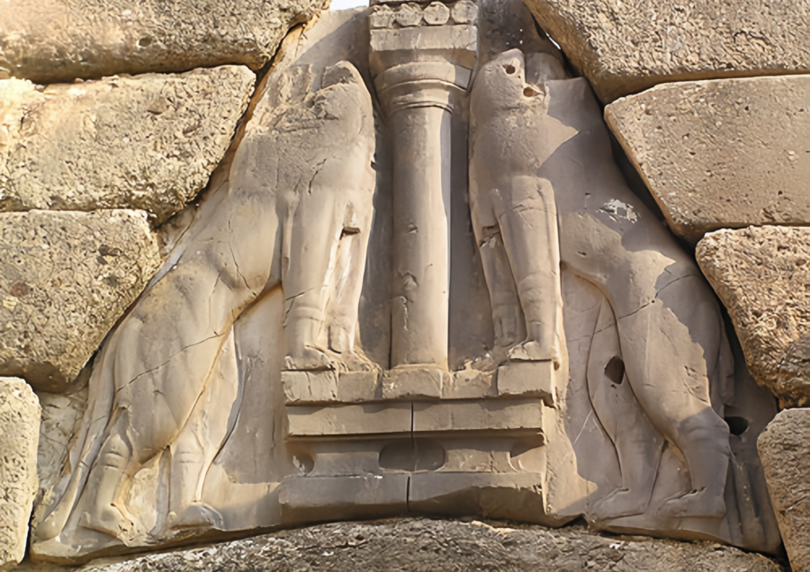 Два льва по сторонам колонны, охраняющие вход в цитадель, символизируют власть династии, так как львы были эмблемой микенских царей. Также считается, что львы должны были устрашать врагов и чужаков, внушая им чувство трепета перед мощью города и его правителей.