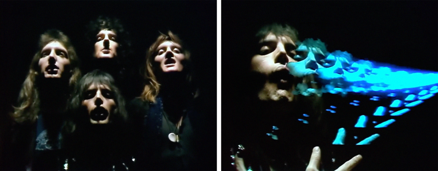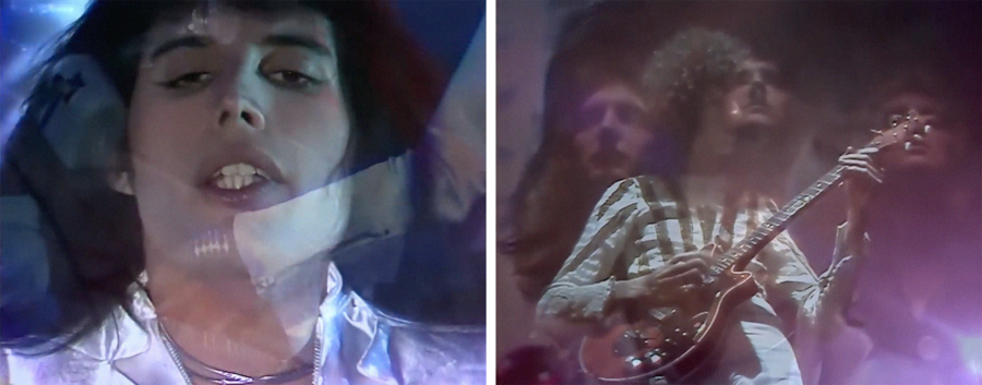 Кадры из клипа Bohemian Rhapsody — Queen (реж. Брюс Гауэрс, 1975 г.)