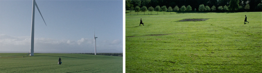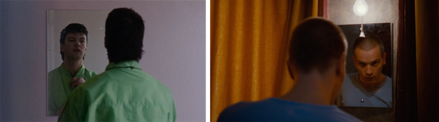 1. Кадр из клипа Starburster — Fontaines D.C. (реж. Об Перри, 2024 г.) 2. Кадр из фильма Trainspotting (реж. Дэнни Бойл, 1996 г.)