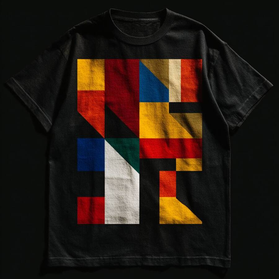 Promt: Create a design for merch «Nikolai Suetin Park,» inspired by the work of artist Nikolai Suetin and his Suprematist style. The design should be modern, minimalist, and abstract, featuring clean geometric shapes and bright colors: red, orange, and green. Suitable for printing on T-shirts, hoodies, bags, and mugs. The logo and composition should be harmonious, artistic, and recognizable, conveying the spirit of Suprematism. White or neutral background, no complex gradients, focus on shapes and color combinations.