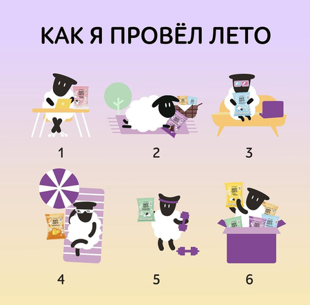 Социальные сети поддерживают образ бренда: минималистичный дизайн, участие маскота овечки Холи, наклоненные плашки с текстом. Помимо этого, бренд позволяет себе добавить чуть больше яркости и деталей, чтобы заманить покупателя купить товар. В историях сообщается о новых коллаборациях и вкусах, указывая прямую ссылку на покупку товара.