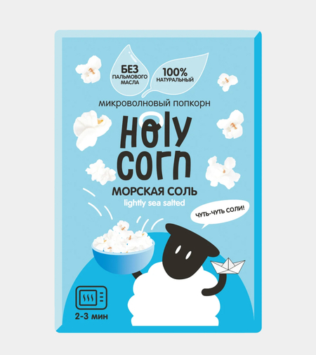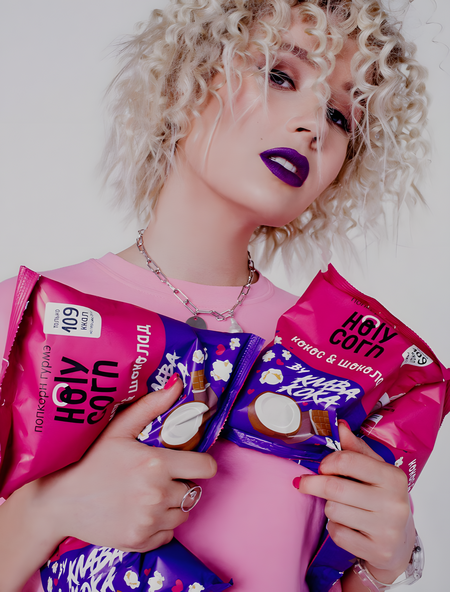 Holy Corn анализирует своих покупателей и предлагает альтернативный взгляд на снеки. Натуральный состав, концепция полезного и вкусного перекуса, лаконичный дизайн без кричащих цветов и заголовков, открытость аудитории, сотрудничество с современными брендами — вот что привлекает молодежь.