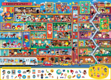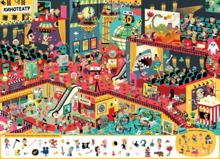 Такая игра развивает умение сфокусироваться на главном среди моря отвлекающих факторов. Так, ребенок с детства учится совершать осознанный выбор, анализировать, где нужный предмет, а где нет, какой истинный, а какой только кажется таковым. Найти ценную «иголку» в «стоге» визуального шума, толпы людей. Каждый разворот — это модель современного общества, поглощенного в многообразии информации.