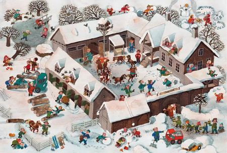 Именно в этот временной промежуток появляется первый Виммельбух. Виммельбух представляет собой особый тип детских книг, основу которых составляют большие, тщательно проработанные иллюстрации с множеством персонажей, предметов и событий. Эти книги помогают детям развивать внимание, воображение, речь и память. Виммельбухи также часто называют книгами «найди и покажи», так как предлагают находить спрятанные объекты по определенному заданию.