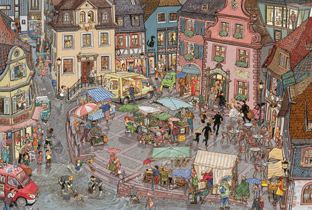 Множество сюжетов в ее работах пересекаются, переплетаются, происходят одновременно, как в реальной жизни. Погружаться в эти яркие миры можно под разными углами и бесконечное число раз, ведь основная ценность виммельбуха — его визуальная составляющая.