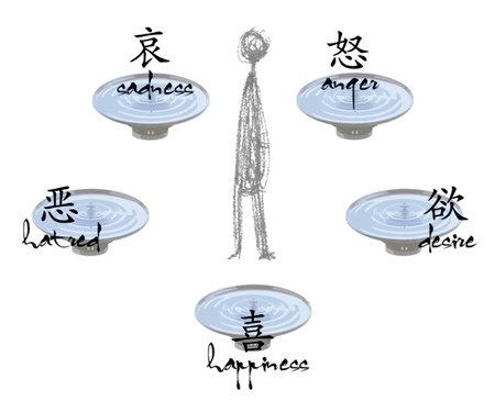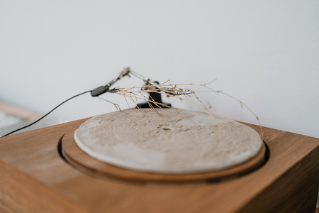 Электрическая активность мозга переводилась в звуковые волны, которые запускались через колонки с подносами воды, каждая из которых символизировала одну из эмоций — печаль, гнев, ненависть, желание и радость. Вибрации на воде становились отражением её внутреннего состояния.