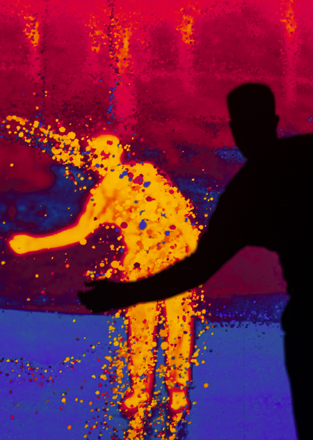 Сенсоры движения здесь играют ключевую роль: они фиксируют положение тел в пространстве и запускают визуализацию границ между ними. Без взаимодействия нескольких человек работа не существует — тем самым подчеркивается, что «я» возможно только через «другого».