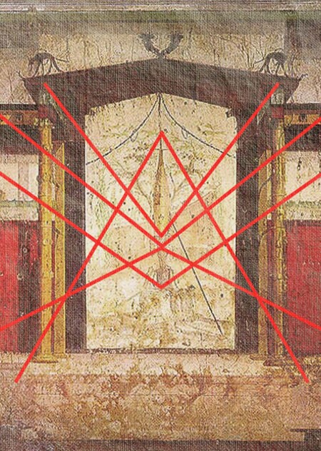 Важным для изучения перспективы в итальянской живописи представляется обратить внимание на античное наследие. Иллюстрацией попытки приблизиться к реалистичной передачи архитектурного объёма на плоскости является «Зал масок» в доме Августа. Эта работа стала основой для развития перспективы в последующие века.