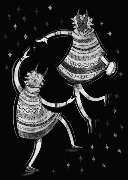 Серия графических листов про загадочных «шаманчиков». Однажды увидев сон, я больше не смогла выкинуть эти образы из головы. Мне захотелось изобразить «шаманчиков», опираясь на случайно сгенерированные числа, которые стали количеством персонажей на листе.