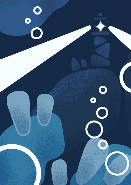 В основе проекта — дополнение визуального языка школы «Река знаний». Иллюстрации сохраняют фирменный стиль, но переосмысляют его: элементы айдентики превращаются в модули, объединённые образом морского дна и маяков. Морское дно символизирует глубину и познание, а маяки — свет и ориентир. Такое сочетание естественно перекликается с темой школы, ведь все реки рано или поздно впадают в океан