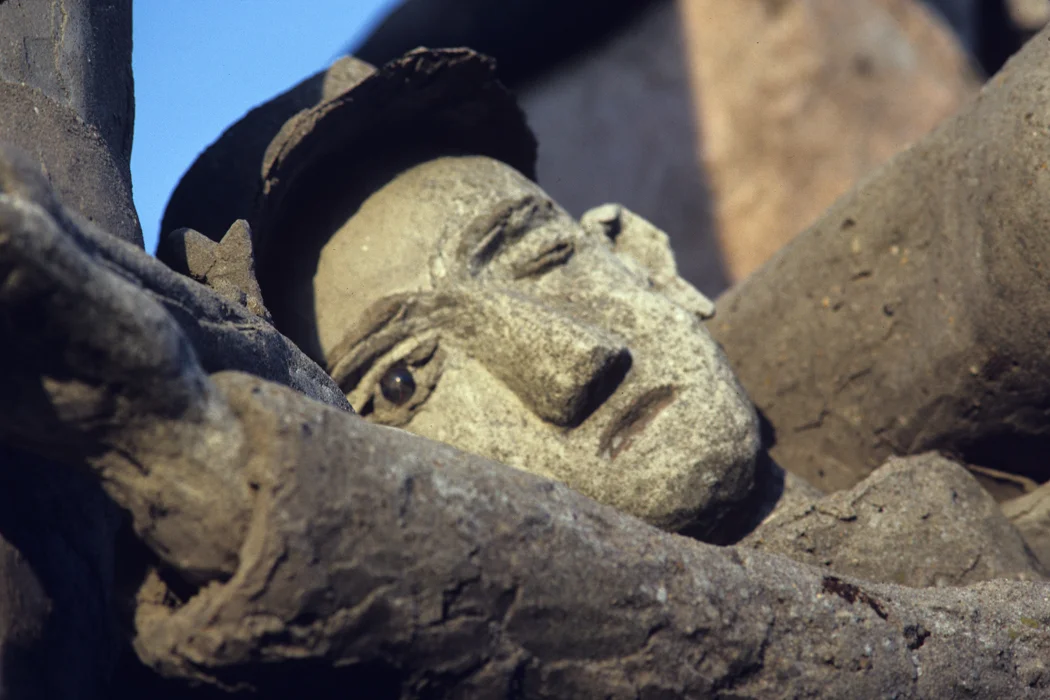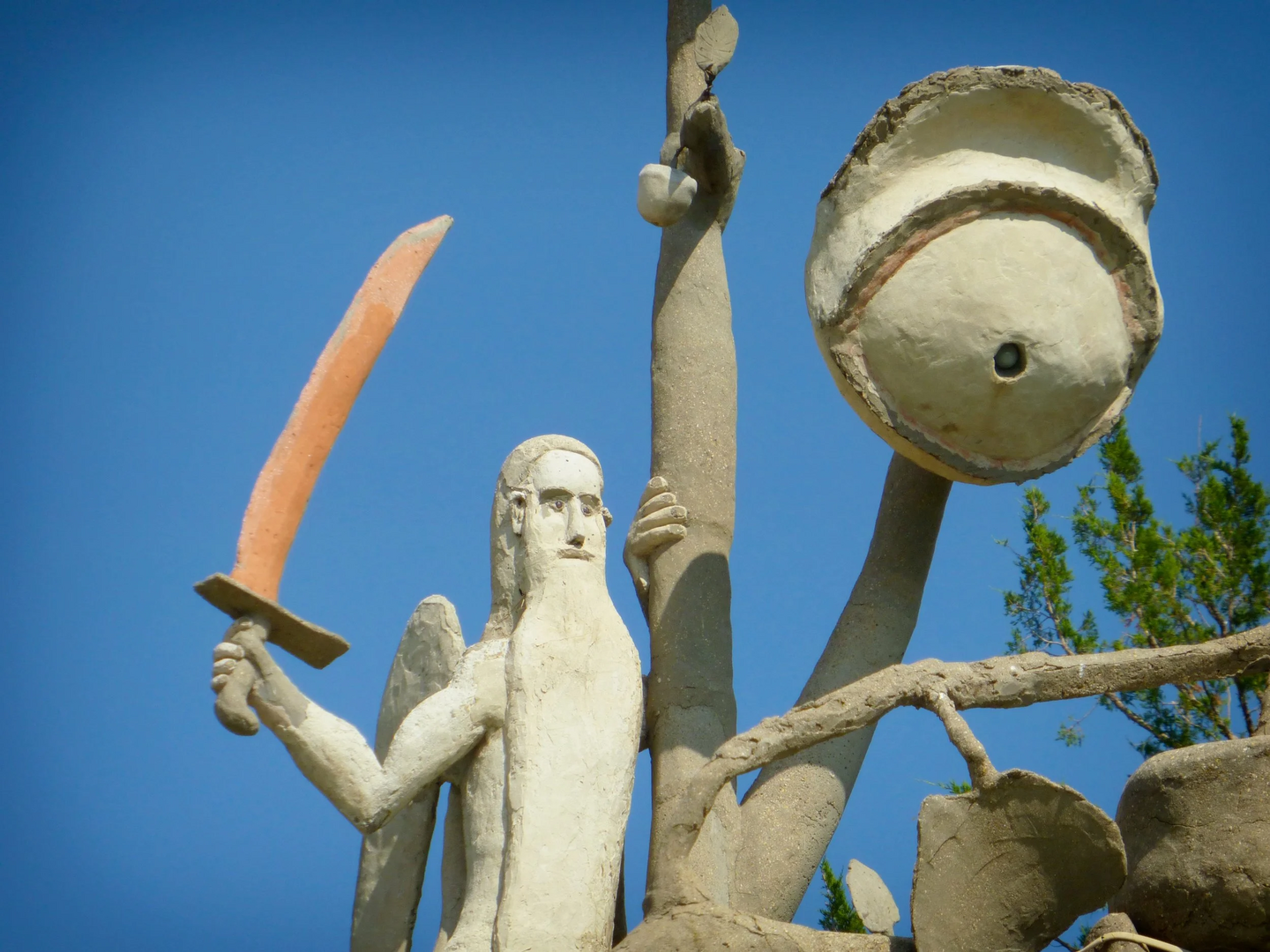 Это самый буквальный автопортрет автора. Динсмур не просто возвел скульптурный комплекс, но и построил мавзолей для собственного тела. В результате он забальзамировал себя внутри, чтобы стать вечной частью своего произведения, демонстрируя, что жизнь и убеждения неотделимы от его искусства. Гроб был окружен слоями стекла и бетона, чтобы посетители могли увидеть мумию Динсмура, которая должна была стать «вечной частью» произведения. Это был его окончательный акт самопрезентации и гарантия жизни сада после смерти автора.