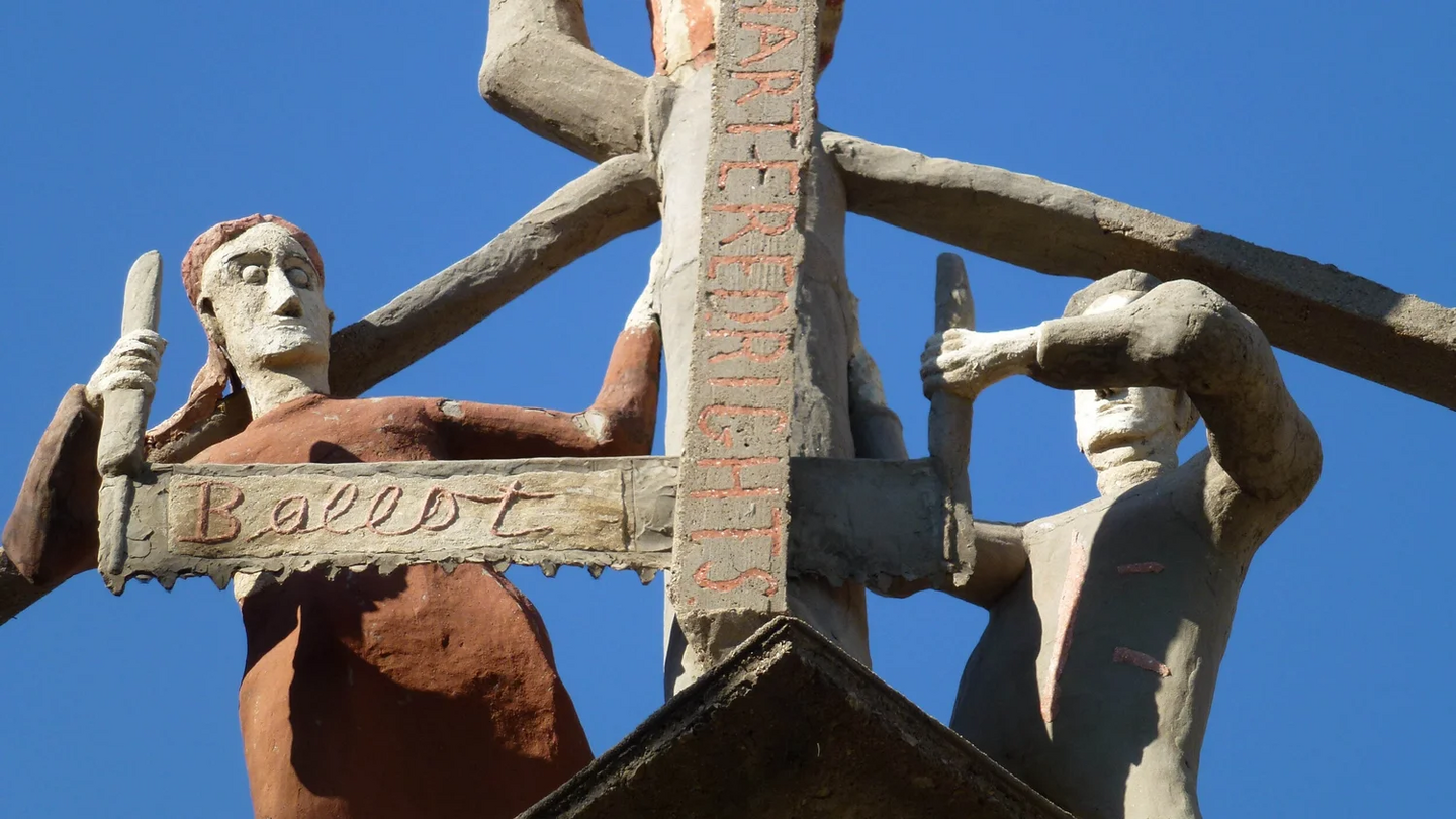 Выбор Динсмура неслучаен. Используя дешёвый, долговечный и «народный» материал — бетон, он отказывается от традиционного академического искусства. Этот «низкий» материал становится идеальным средством для выражения «народной» истины и критики элит, которые, как он считал, контролировали ресурсы и культуру. Послание о социальной справедливости буквально отлито из общедоступных элементов, подчёркивая его анти-истеблишментный характер.