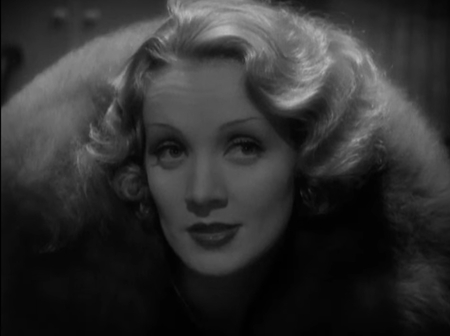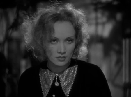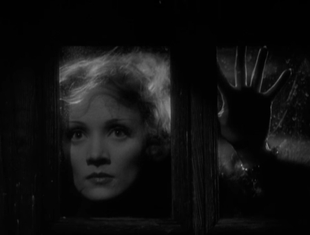 Данный кадр является показательным для понимания метода фон Штернберга. Тень здесь используется не для сокрытия, а для создания сложного психологического образа. Не смотря на то, что они не скрывают часть лица, они буквально рассекают лицо на две личности. Публичную маску циничной артистки и скрытую, невидимую зрителю внутреннюю жизнь. Глаза становятся источником загадки, а улыбка остаётся инструментом манипуляции. Такой приём превращает статичный портрет в динамичную психологическую драму.