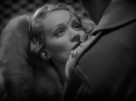 Эти кадры отражают визитную карточку стиля Джозефа фон Штернберга. Здесь свет и тень сразу заявляют о себе как о главных рассказчиках. Дымка растворяет контуры, создавая ощущение мимолётности и иллюзорности происходящего. Резкие тени рисуют лица и кадр. Свет подчеркивает акценты. Всё становится не просто изображением, а сложносочинённым визуальным текстом, котором атмосфера преобладает над действием.