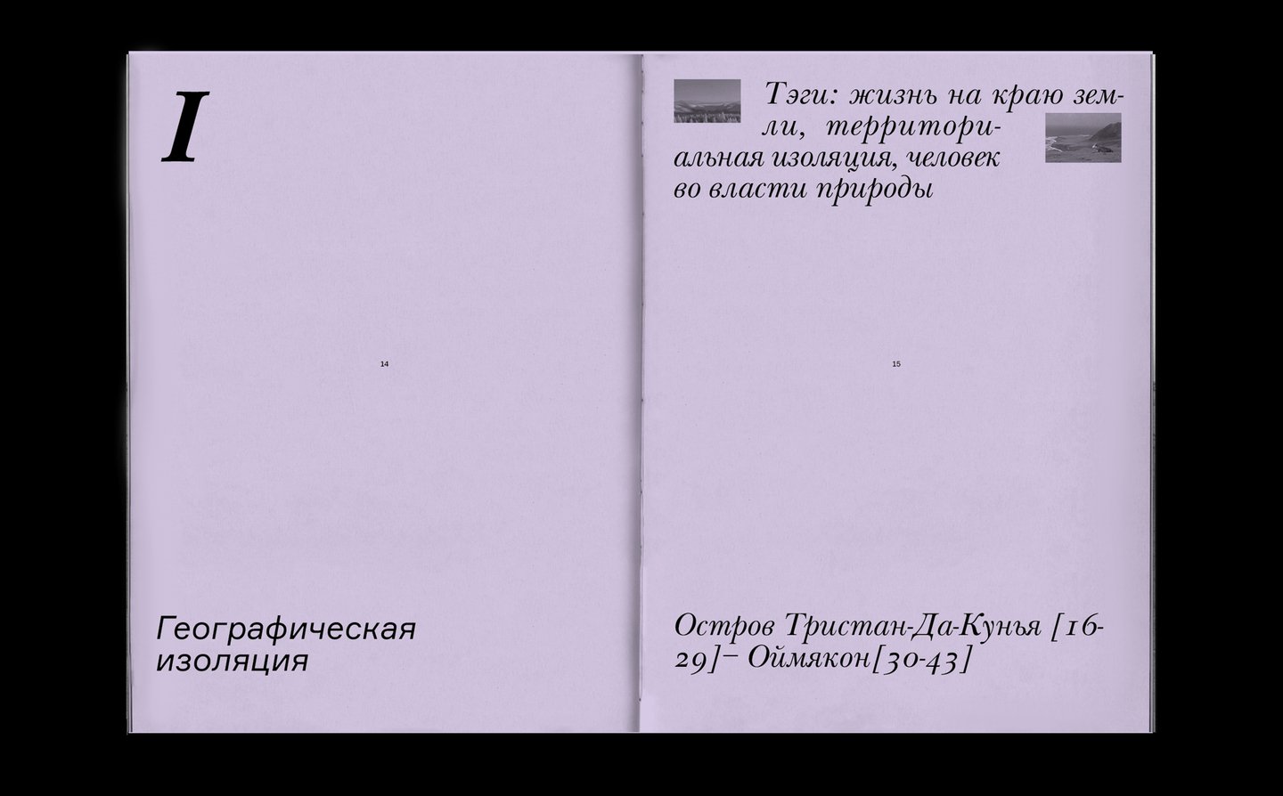 Визуальное исследование посвящено изолированным поселениям и жизни внутри них. В качестве объектов исследования взяты места, разбросанные по разным уголкам мира и имеющие различную типологию изолированности, что сделано с целью показать ситуационное разнообразие, а так же проанализировать уклад жизни людей внутри поселений и влияние изоляции на него с различных сторон.