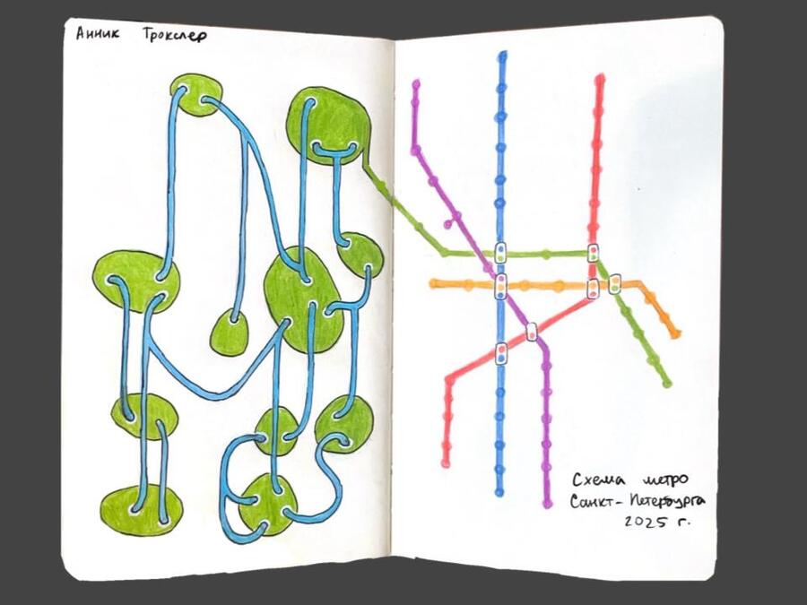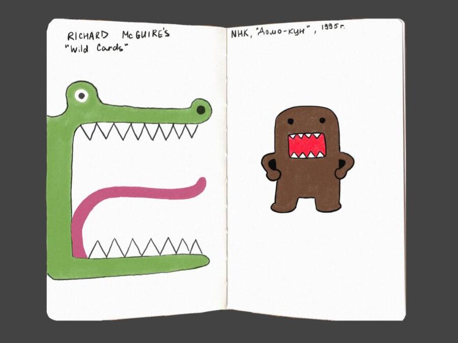 Я подобрала пары к разным деятелям искусства, основываясь на общих признаках, таких как: цвет, форма, концепция. Моя основная идея — показать, что творчество разных авторов взаимосвязано и повторяется вне зависимости от эпохи и направления.
