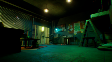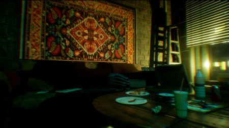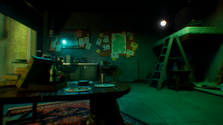 Хозяин квартиры — частный детектив. Его рабочее место довольно обширно, состоит из компьютеров, залежей видеокассет и двух информационноых досок, где он отслеживает продвижение по делу.