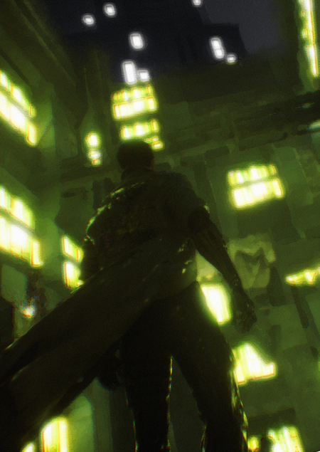 Освещение в квартире тусклое, мрачно-зеленоватого цвета. Дополнительно жилье освещается светом городских огней, благодаря большим панорамным окнам. Жалюзи помогают избавиться от света, когда нужно отдохнуть.