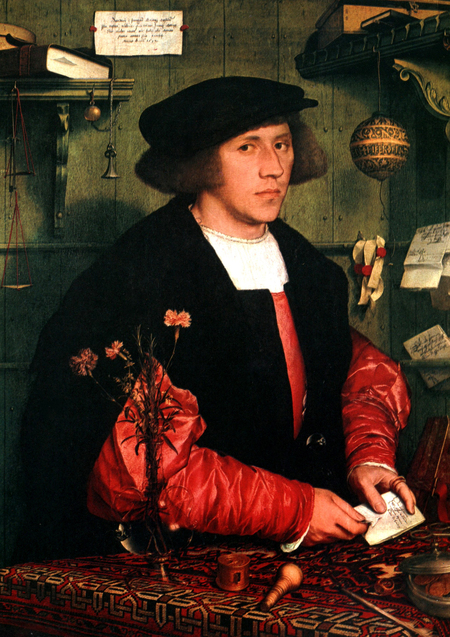 Тем не менее, ближе к позднему Средневековью и особенно в Северной Европе, торговцы начинают изображаться как добропорядочные горожане. Например на портрете Георг Гизе (1532 г.) работы Ганса Гольбейна, ганзейский купец из Гданьска, изображён в своём лондонском офисе, окружённый атрибутами торговли: письмами, весами, печатями. Картина подчёркивает интеллектуальный и финансовый статус купца, демонстрируя его как респектабельного и образованного человека. Таким образом, происходит их постепенная реабилитация в культурном воображении.